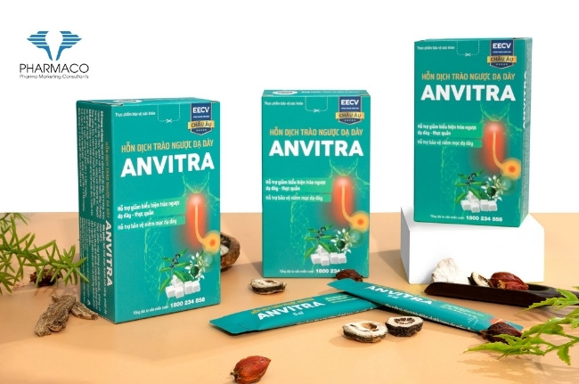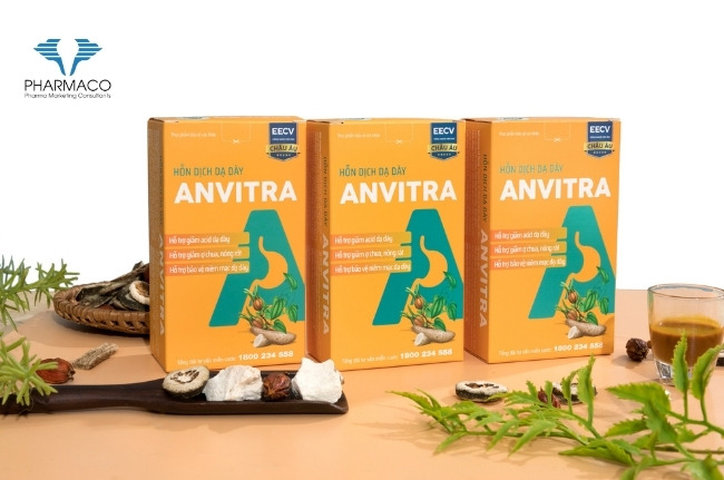 Hỗn dịch Anvitra - giải pháp cho trào ngược dạ dày với công nghệ EECV là sản phẩm của Công ty CP Anvy. Anvitra gồm 2 sản phẩm: hỗn dịch dạ dày Anvitra (hộp màu vàng) dành cho trào ngược dạ dày thực quản, còn hỗn dịch trào ngược Anvitra (hộp màu xanh) được khuyên dùng cho những người bị lâu năm hoặc thường xuyên bị tái phát. Pharmaco đã đồng hành tư vấn chiến lược, xây dựng kế hoạch marketing và sản xuất content truyền thông cho nhãn hàng Anvitra. Doanh thu đã có bước tiến triển rõ rệt.